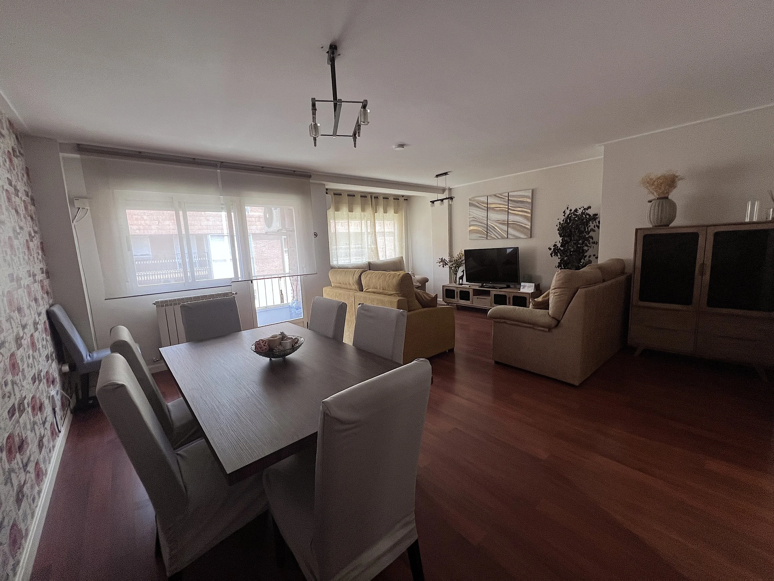 Además, el apartamento cuenta con una mesa de comedor para reuniones especiales, un diseño abierto que amplía la sensación de espacio y suelos de madera que aportan calidez al entorno.